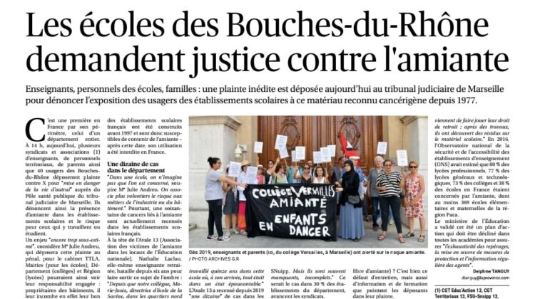 Amiante dans les établissements scolaires des Bouches-du-Rhône : plainte contre X pour mise en danger de la vie d’autrui
