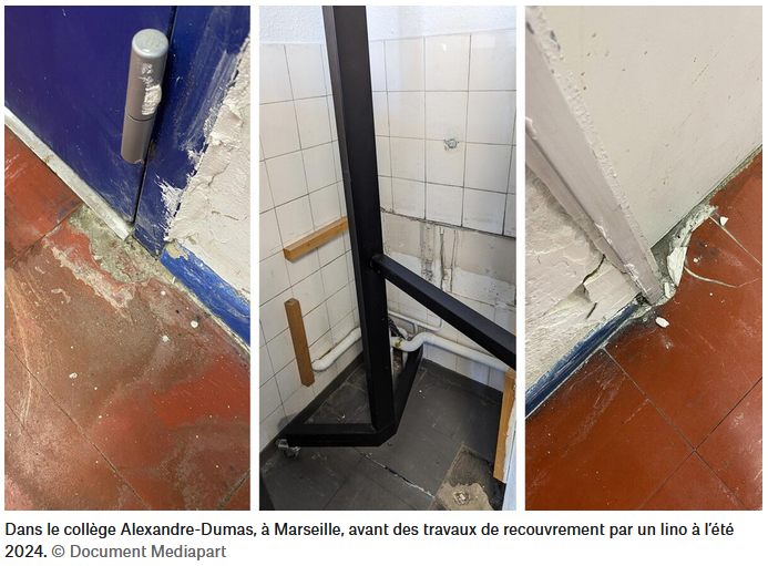 Car une grande partie des bâtiments scolaires contient potentiellement de l’amiante dans la colle des dalles, les plafonds et les cloisons s’ils ont été construits avant 1997, année de son interdiction. Si le bâtiment est en bon état, il n’y a pas de risque pour la santé. Mais le danger est bien réel en cas de trous dans les murs et du fait de l’usure naturelle du bâti. À Marseille, la vétusté des établissements scolaires a déjà fait l’objet de nombreuses alertes.